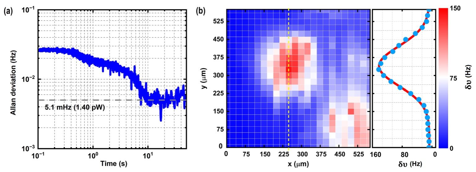 图1.(a)光力红外传感器的稳定性。(b)基于单个光力红外传感器的高空间分辨率红外成像。
