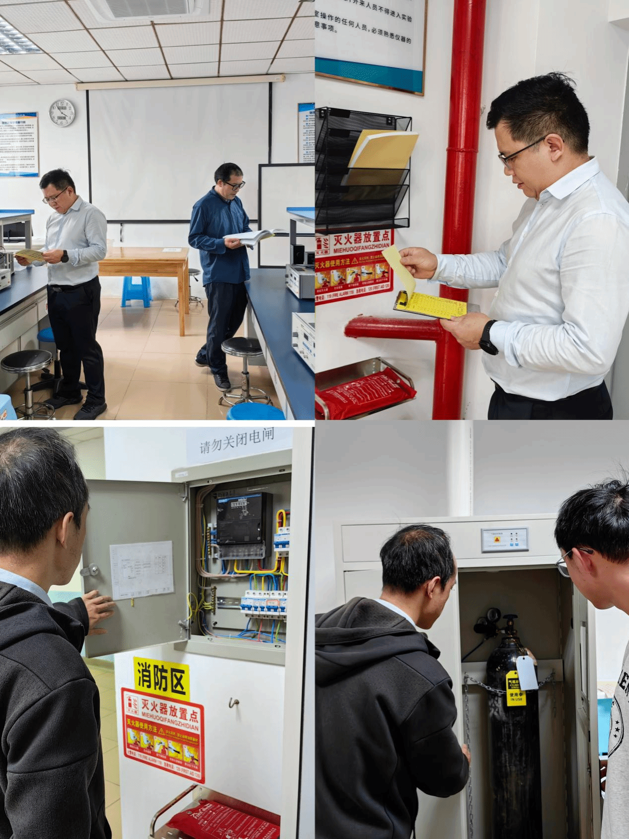 2024年寒假来临之际,太阳成集团tyc在庾名槐副经理带领下,依据《高等学校实验室安全检查项目表(2023 年)》要求,在1月22日对学院所有实验室进行全面的安全检查,重点检查了消防设施安全、气瓶使用安全、实验仪器使用安全以及门窗安全等各项安全问题,针对发现的问题进行详细指导;同时强调实验室应把安全摆在各项工作的首位,寒假期间采取有效防范措施,消除各类隐患,保障学院教学和科研实验室安全!
