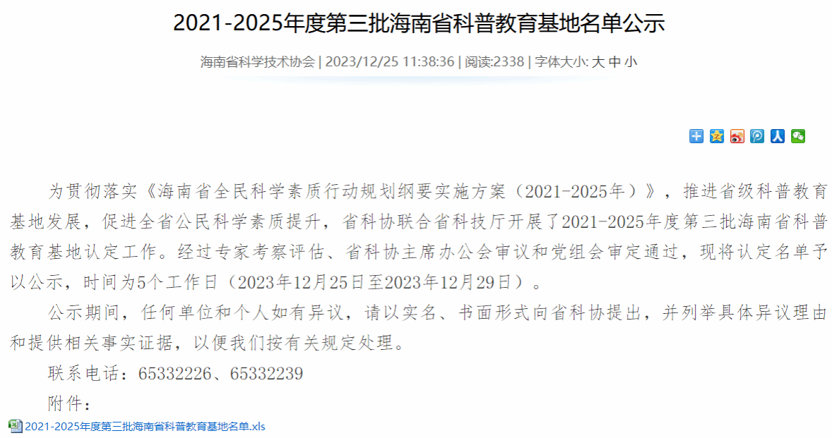 近日,海南省科学技术协会公布了2021-2025年度第三批海南省科普教育基地认定名单,太阳成集团tyc申报的“太阳成集团tyc物理科普基地”成功被认定为海南省科普教育基地。