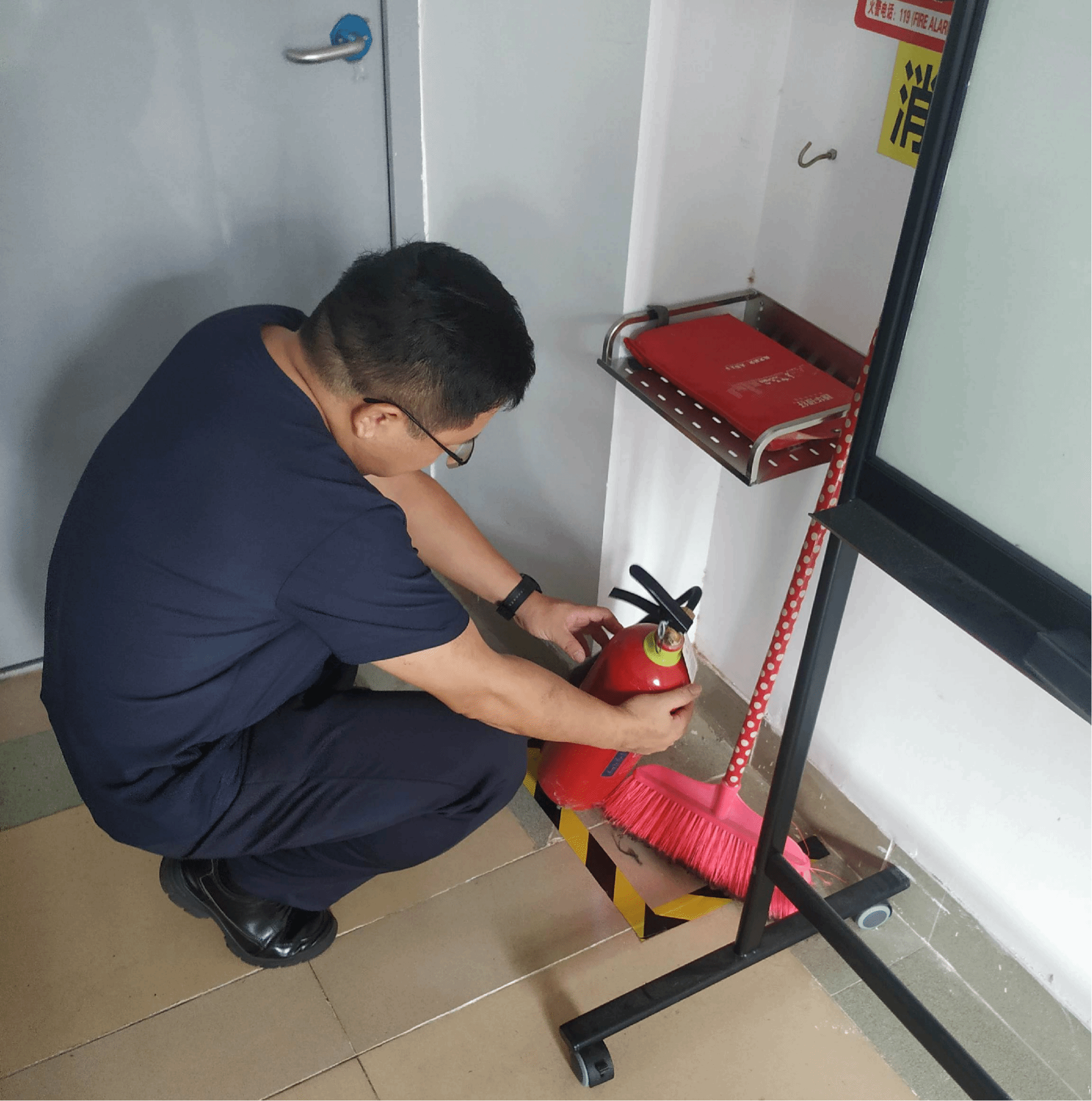 分管领导庾名槐副经理带领实验室管理人员对学院公共实验室、专业实验室、7号教学楼等实验室,按照《紧急通知》中列出的8个内容,着重检查了消防设施和器材的配置、有效情况及记录等。对于“实验室烟感报警器”的隐患,安排相关人员联系学校进行汇报和协调,其他情况良好。