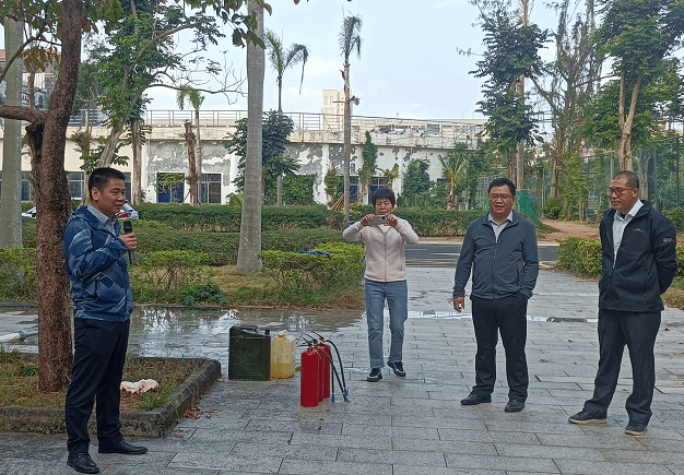 公司党总支书记黄文强同志首先传达了上级部门和学校有关安全稳定工作的会议精神,并对学院寒假期间的安全稳定工作进行部署。他强调,师生的消防应急能力对于有效应对突发消防安全事故,消除、减少突发消防事件带来的危害至关重要,我们一定要加强消防安全教育并经常进行消防安全演练,切实提高师生的消防应急能力;其次保卫处工作人员针对学校用电安全,消防逃生等安全常识给大家进行了重点宣传,并对灭火器、灭火毯和消防栓箱内器材进行了讲解和示范;最后,在保卫处工作人员的指导下,学院师生在基础实验楼旁的空地上用灭火器、消防栓进行了消防灭火实践演练。