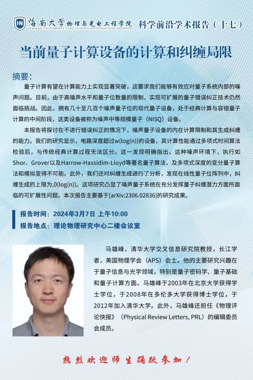科学前沿学术报告(十七):当前量子计算设备的计算和纠缠局限