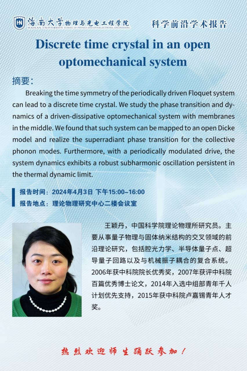 科学前沿学术报告(二十):Discrete time crystal in an open optomechanical system