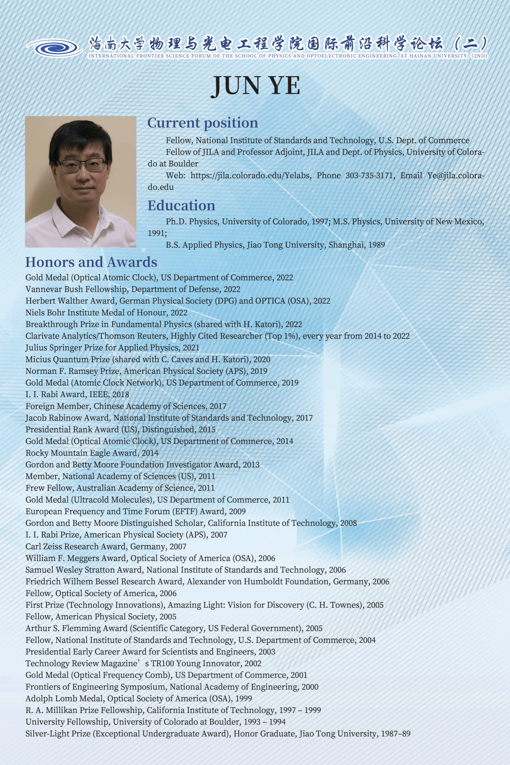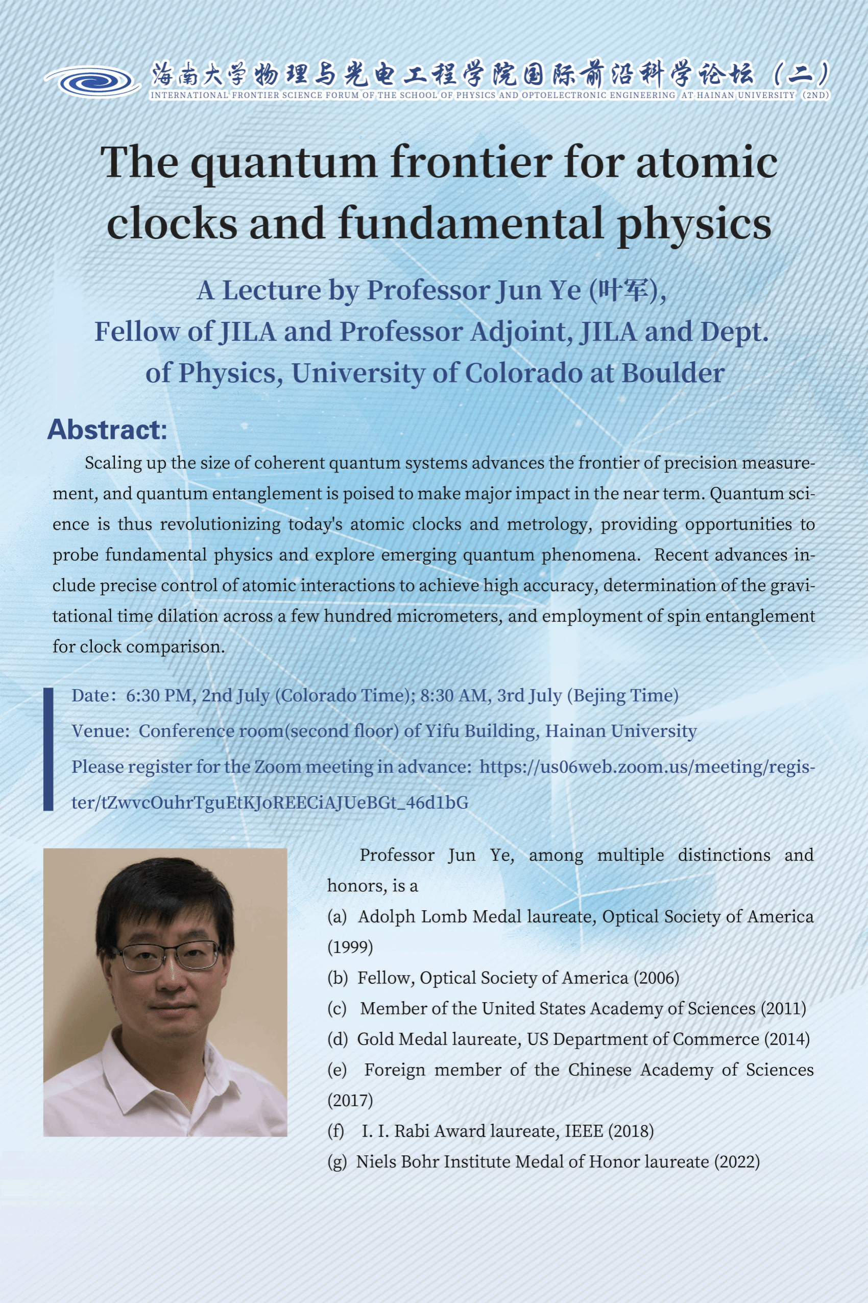 国际前沿科学论坛(二):The quantum frontier for atomic clocks and fundamental physics