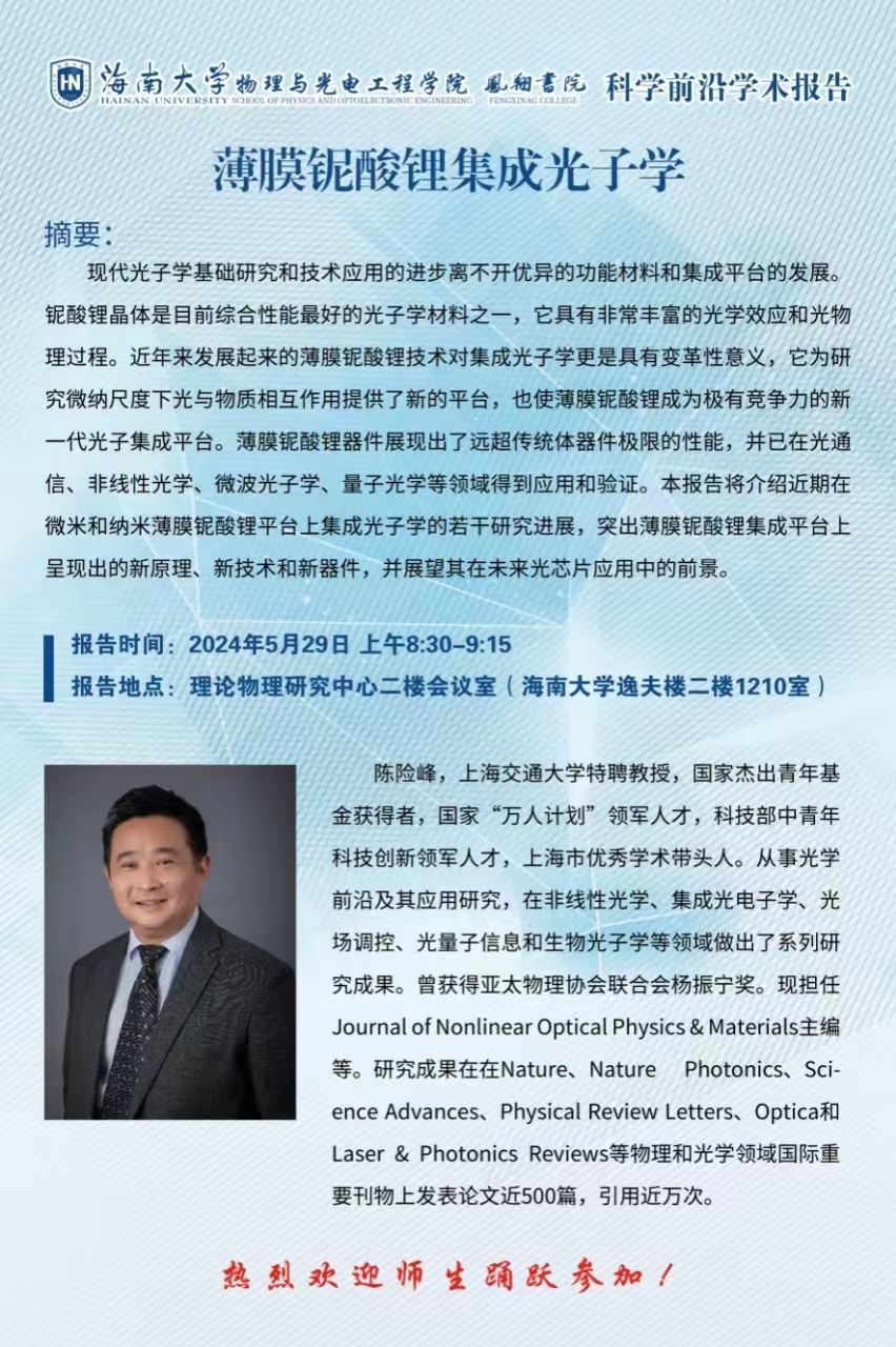科学前沿学术报告(二十六):薄膜铌酸锂集成光子学