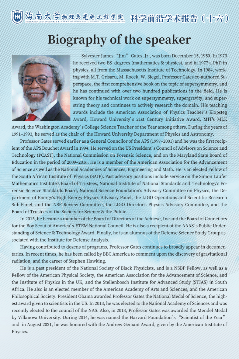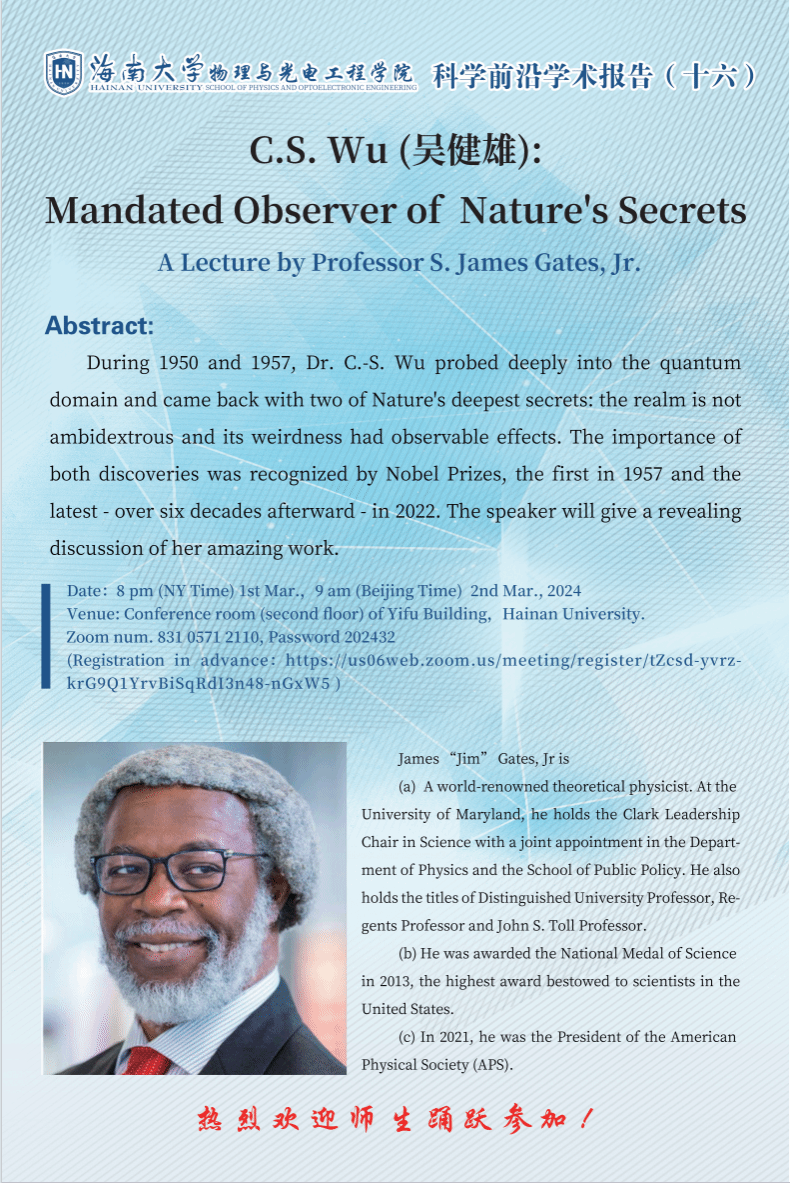 国际前沿科学论坛(一)/科学前沿学术报告(十六):Mandated Observer of Nature's Secrets