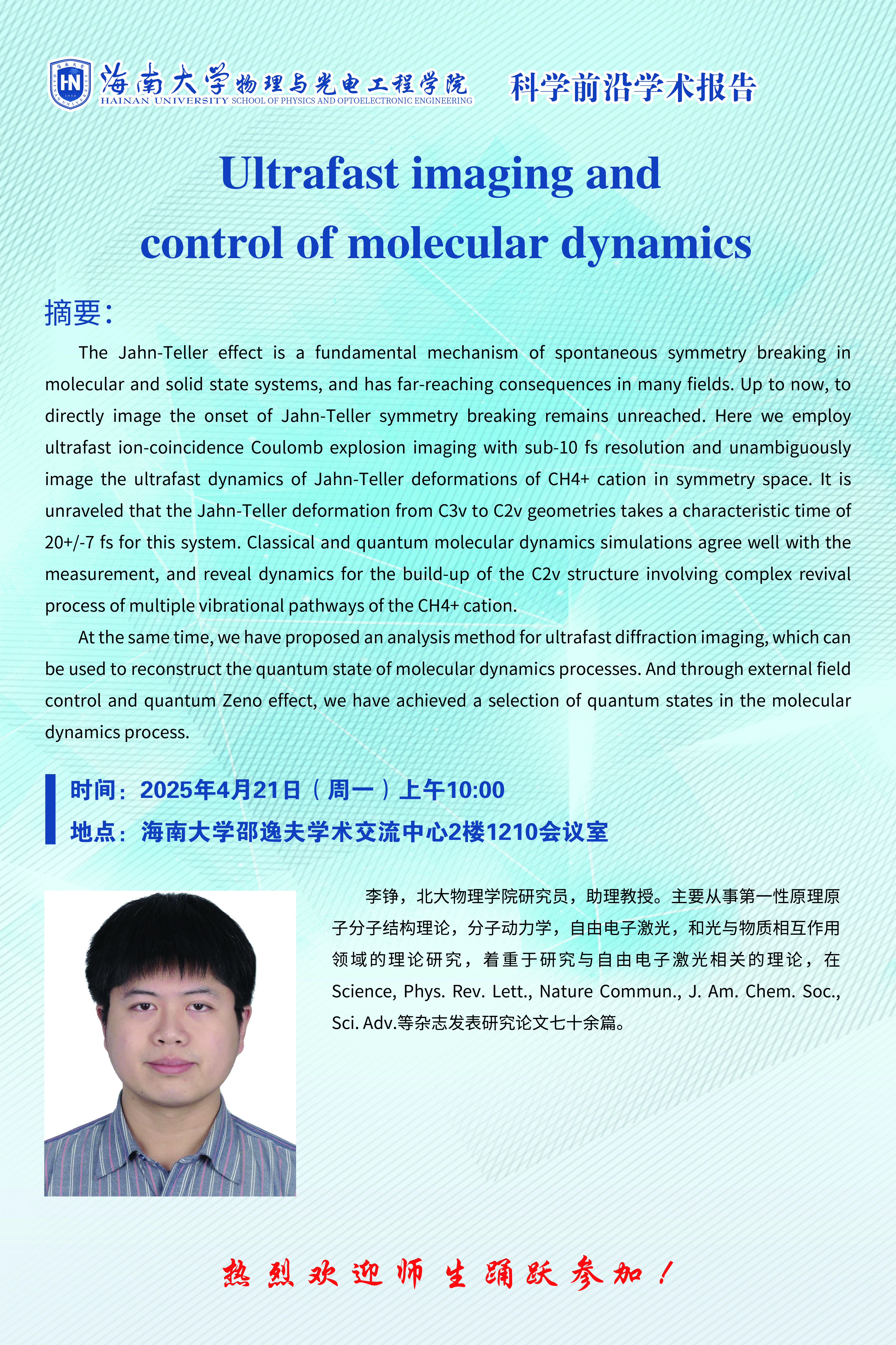 科学前沿学术报告(五十一):Ultrafast imaging and control of molecular dynamics
