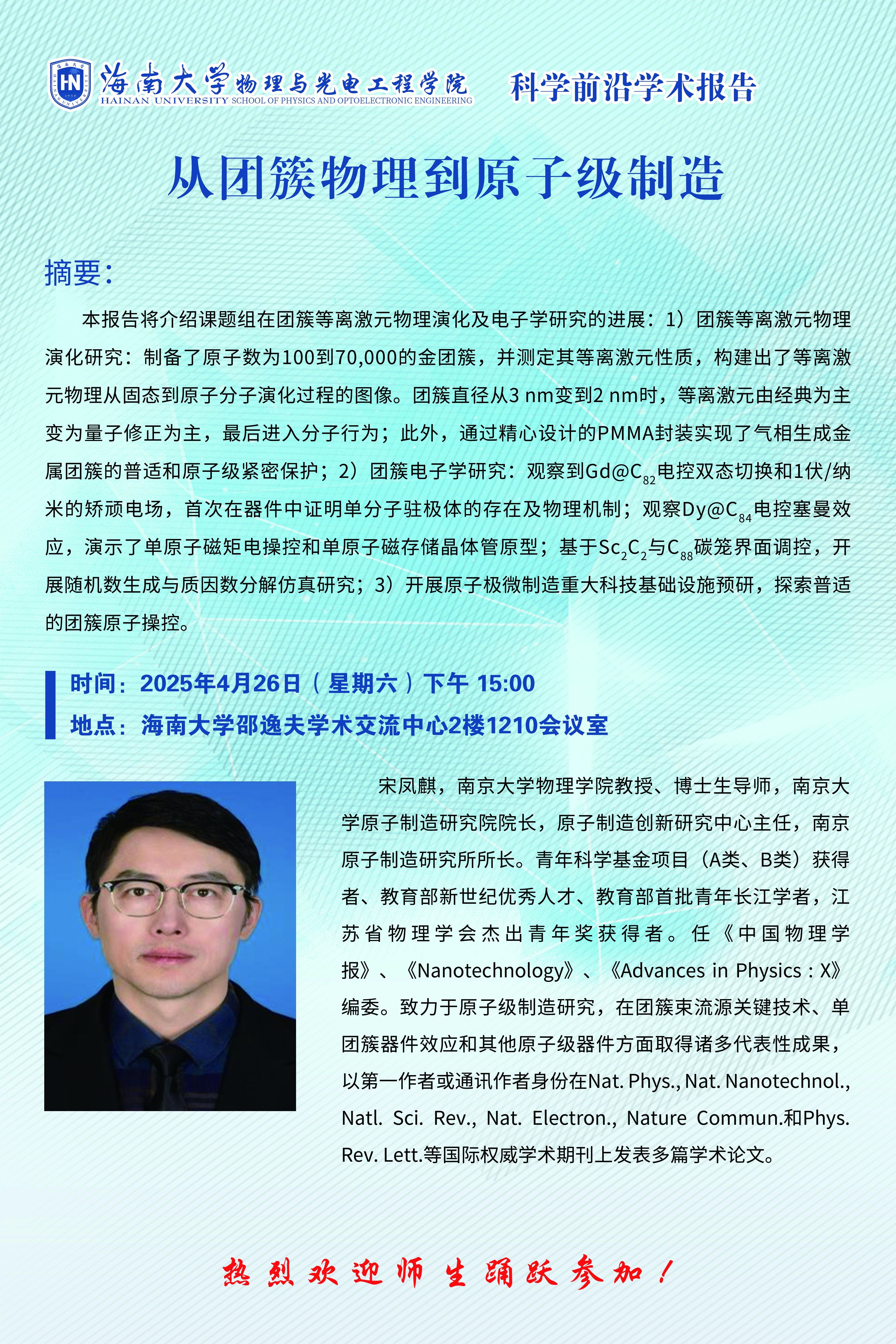 科学前沿学术报告(五十二):从团簇物理到原子级制造