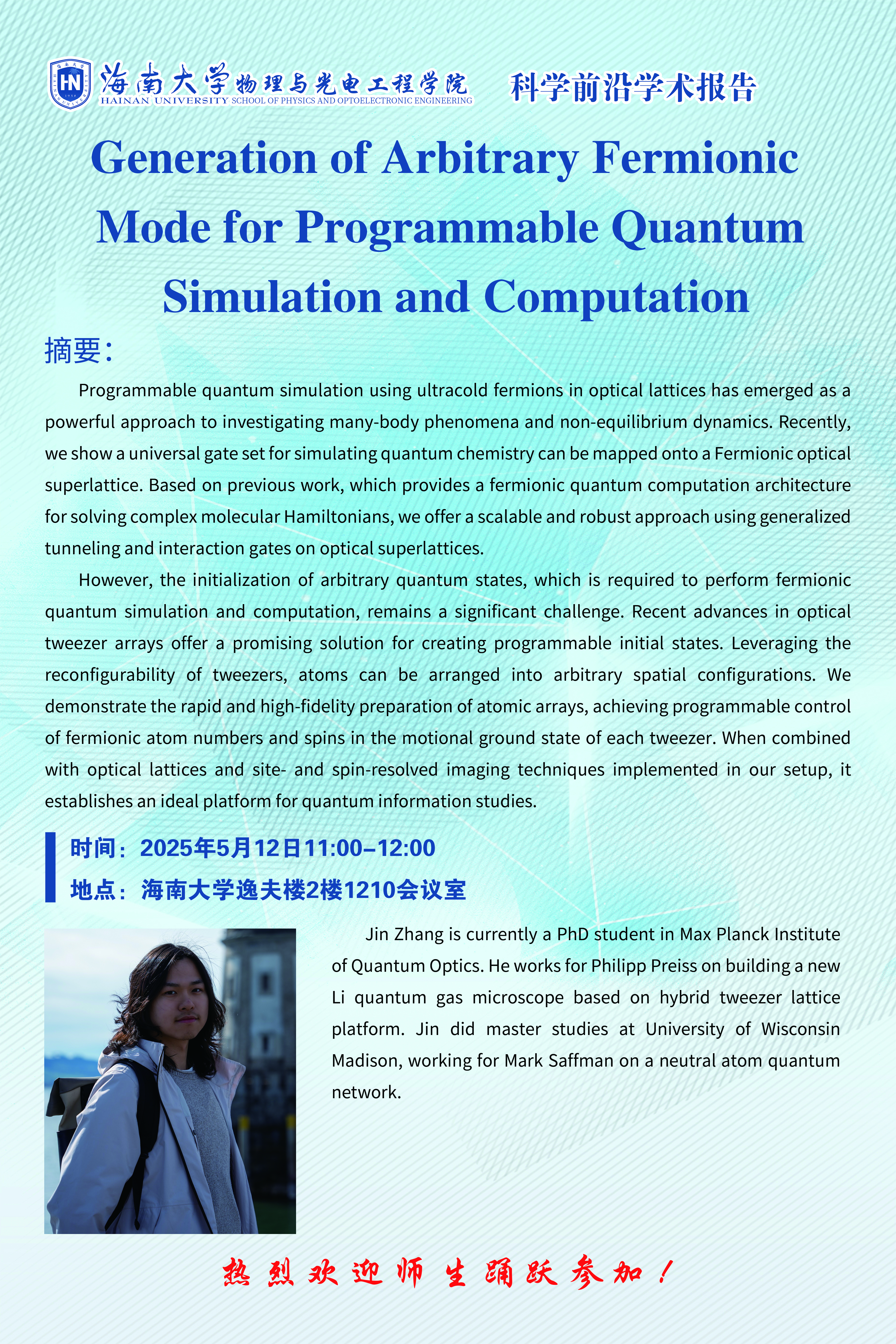 科学前沿学术报告(五十四):Generation of Arbitrary Fermionic Mode for Programmable Quantum Simulation and Computation