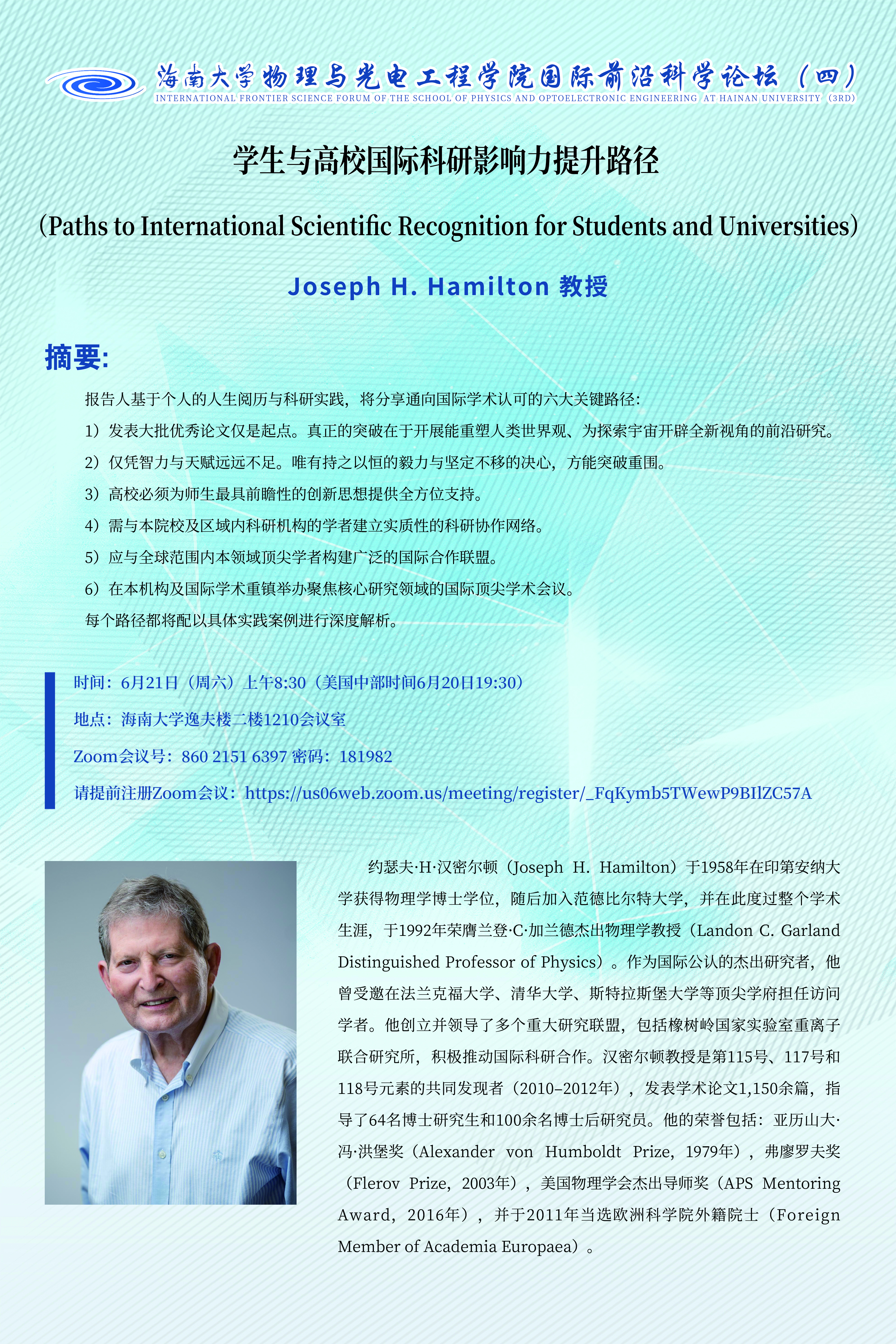 国际前沿科学论坛(四):Paths to International Scientifc Recognition for Students and Universities