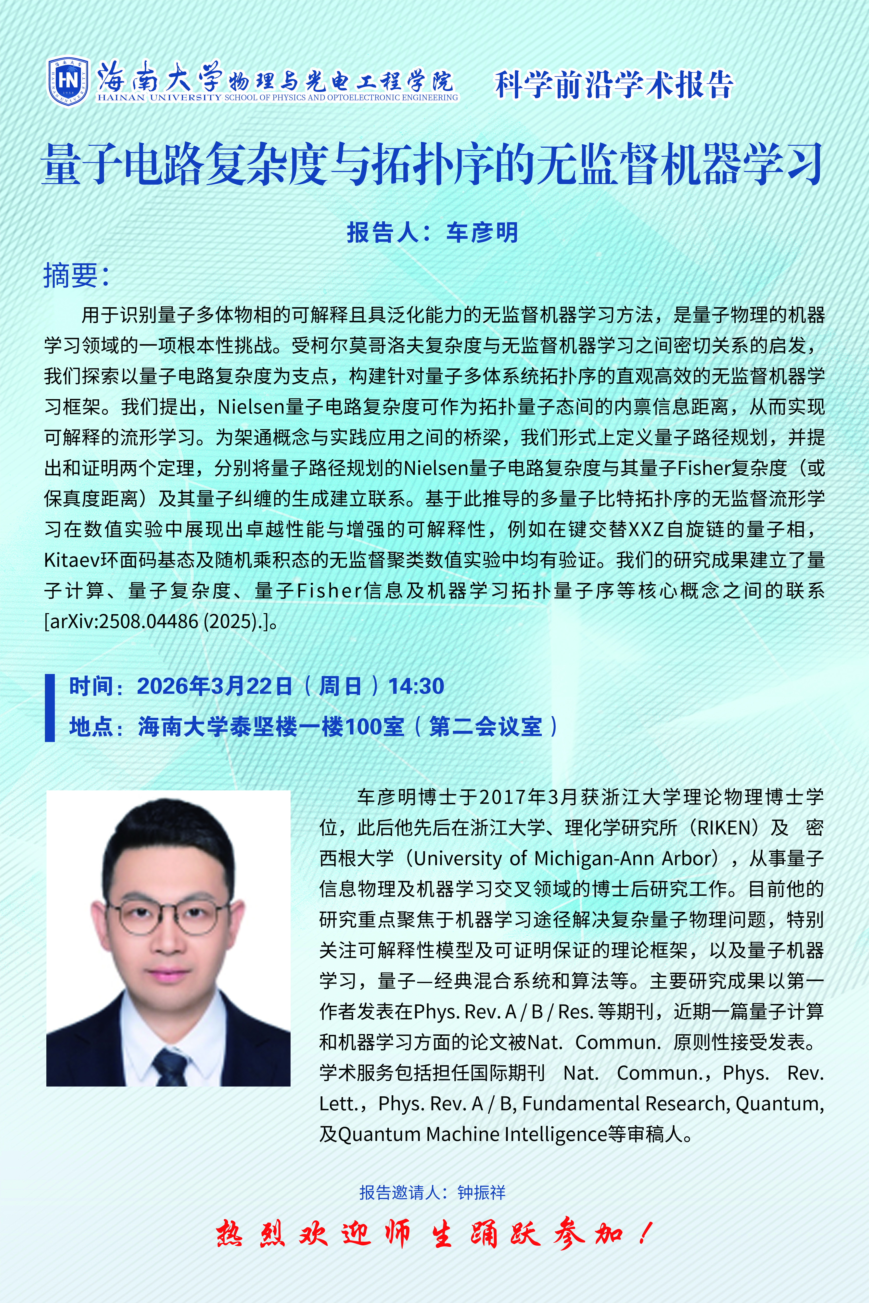科学前沿学术报告(八十二):量子电路复杂度与拓扑序的无监督机器学习
